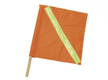 Banderola de tela poliéster/pvc fluorescente de 45cm x 45 cm con mango de madera de 60 cm.